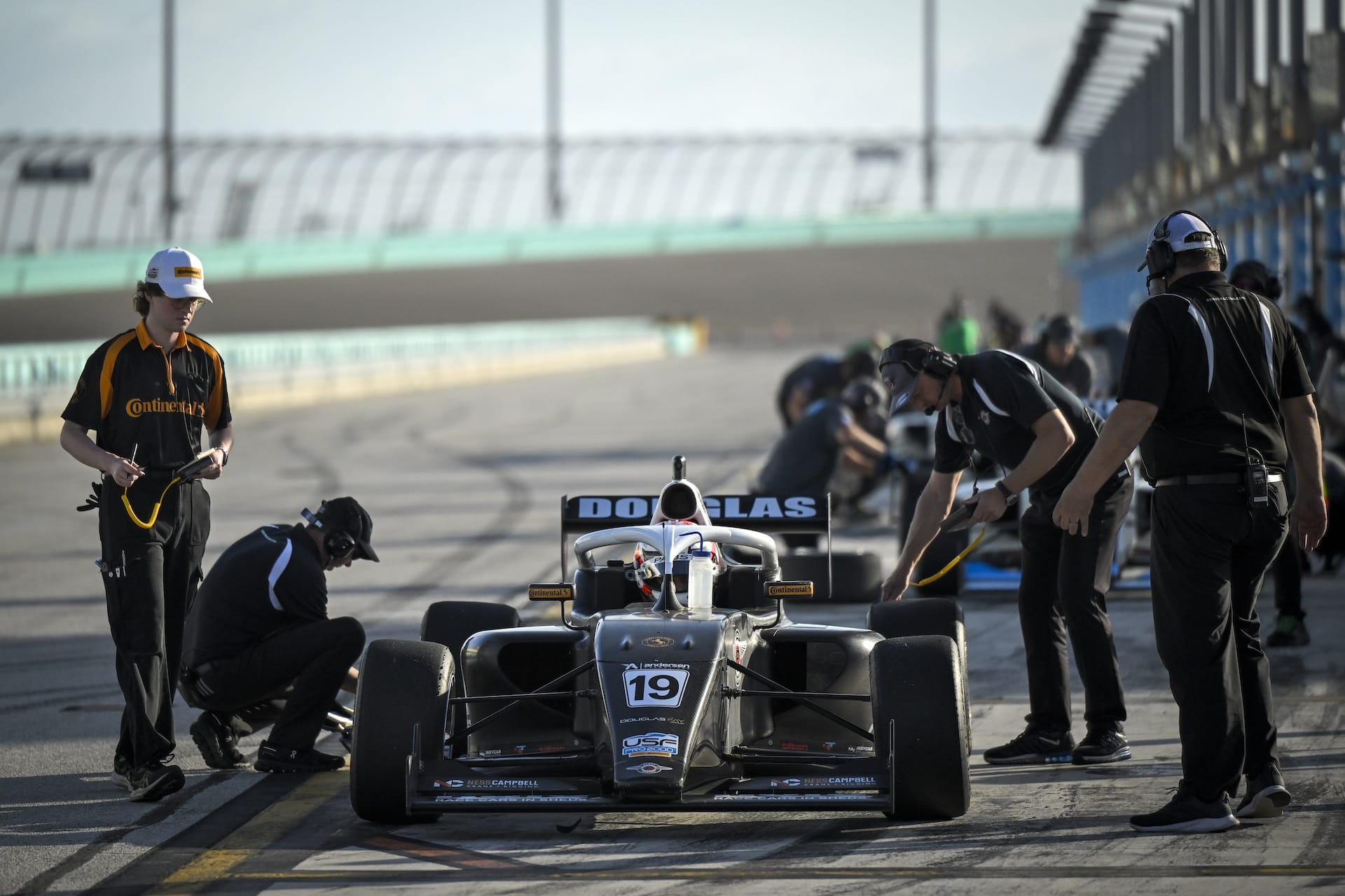 Jacob Douglas wrapped up USF Pro 2000 Spring Training on the Homestead-Miami Speedway Road Course on a high, underlining his front-running credentials with four top-three finishes from the five sessions he contested.